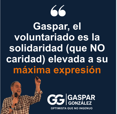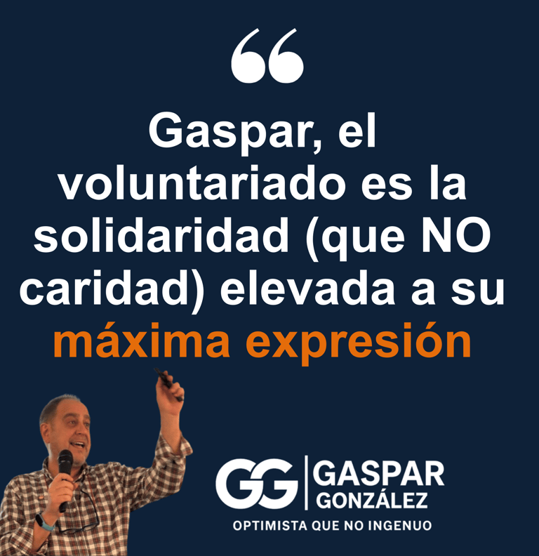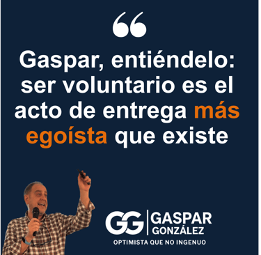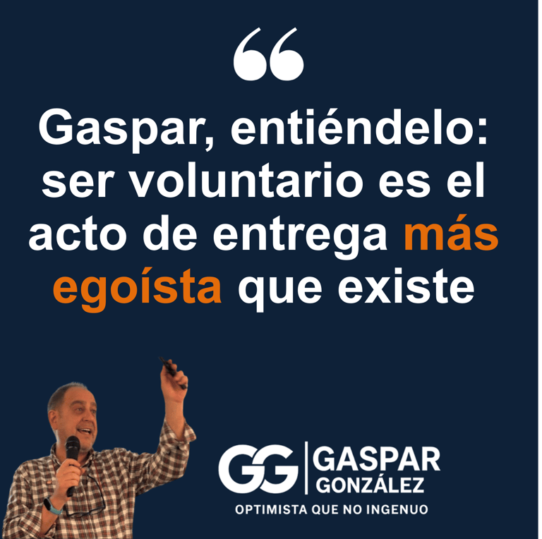 El voluntario no nace ni se forma; ser voluntario es una elección que brota del corazón y, con el tiempo, se convierte en un estilo de vida. Al adentrarnos en el voluntariado, creemos que somos los que damos, y ciertamente lo somos. Sin embargo, también somos receptores. De hecho, ser voluntario es una de esas experiencias donde siempre, siempre, siempre recibes inmensamente más de lo que entregas. Y aquello que recibes te ser más y mejor persona: un mejor padre, un mejor amigo, un mejor hermano, etc. Te otorga una sensación de paz, llena tu vida de plenitud y te infunde un renovado sentido de ilusión y felicidad. Por todos estos beneficios afirmo que ser voluntario es el acto de entrega más egoísta que existe. No obstante, es crucial señalar, como mencioné anteriormente, que el voluntario es humano y, como tal, experimentará momentos críticos y situaciones adversas. Aun así, también es cierto que desarrollará una capacidad innata, y superior a otras personas, para levantarse de nuevo y tirar «paaaaalante como los de Alicante”.