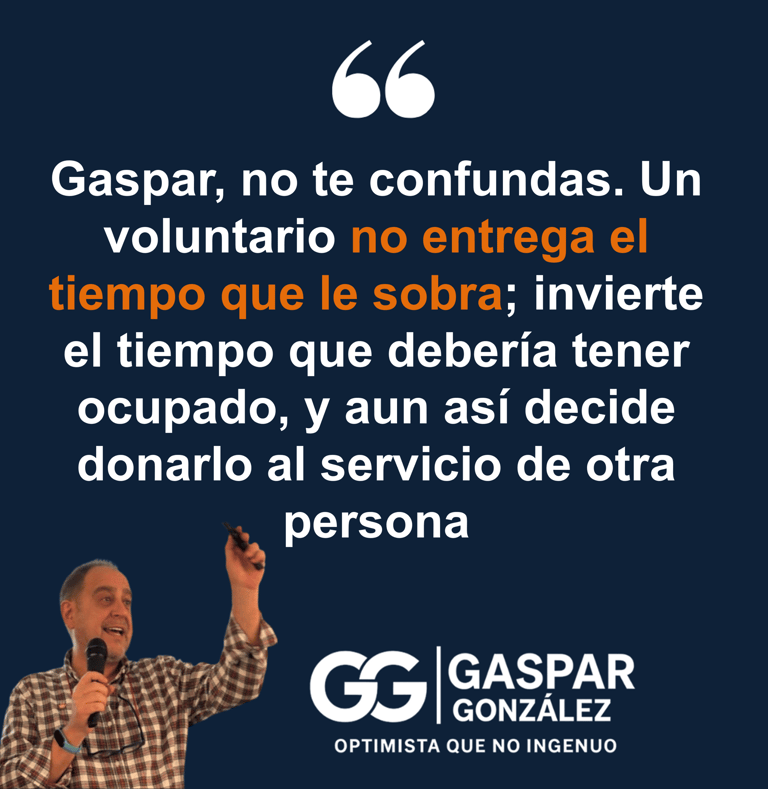 Los voluntarios poseemos una notable habilidad para equilibrar nuestros deseos y metas personales con nuestro compromiso voluntario. Organizamos y gestionamos nuestro tiempo de manera que ambos aspectos encuentren su lugar en nuestra vida. Considero que el tiempo es la materia prima de la vida; no se «tiene», se gestiona.